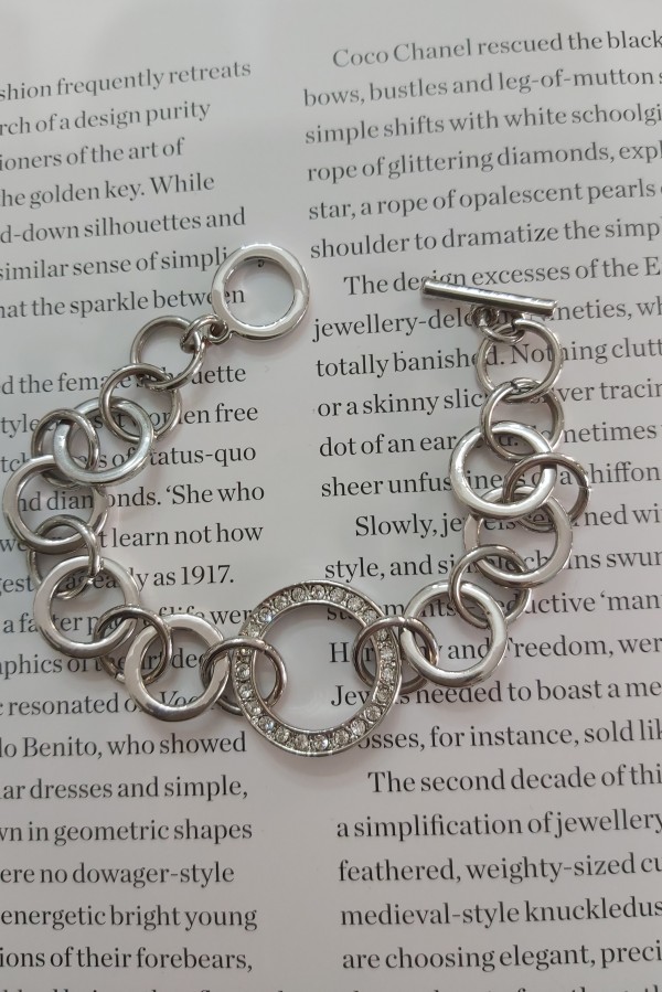 Bratara moderna,metal inoxidabil si cristale,inchizatoatre Toogle,marime 21 cm ,conditie excelenta!