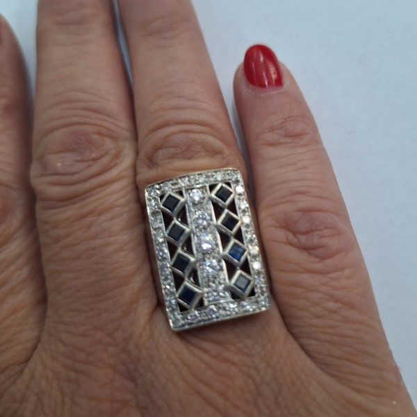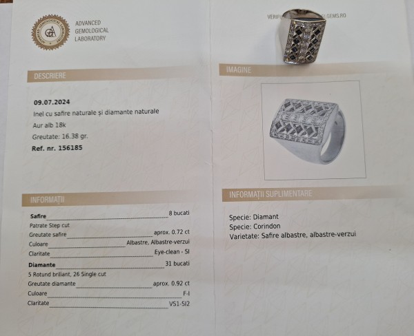 Inel cu Safire si diamante naturale ! Marime 16/56 !Detalii despre Inel le gasiti in Certifictul Gemologic