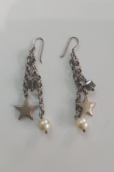 Cercei din argint ! argint 925 ,perla falsa si creist,marime 6,5cm ,greutate 8,75 g ,conditie excelenta!