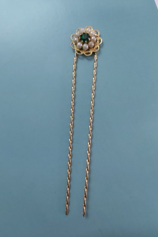 Ac pentru coc,metal placat cu aur ,perle false si cristal,marime 12 cm ,conditie excelenta!