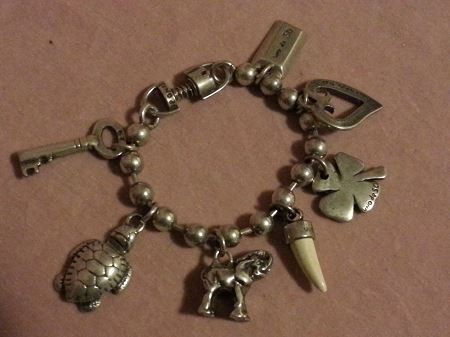 Bratara este din metal argintat,lungime 20 cm,are 7 pandante .conditie excelenta,