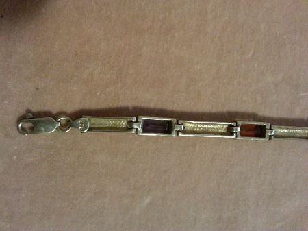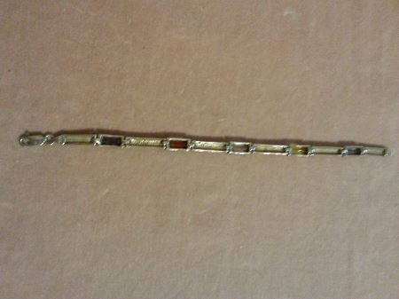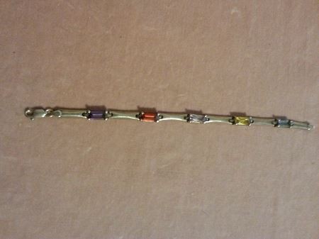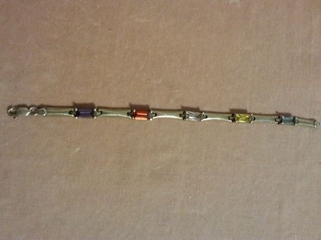 Bratara cu pietre din zirconiu, are 5 pietre de culoare mov,rosu,galben,albastru, mov deschis,lungime 19 cm,latime 07,cm,gramaj 15 g,argint 925