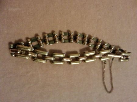 Bratara lucrata manual placata cu aur, perioada interbelica,lungime 21 cm,latime 1 cm,garmaj 19,3.argint 925,placaj cu aur de 14K,lucrata manual