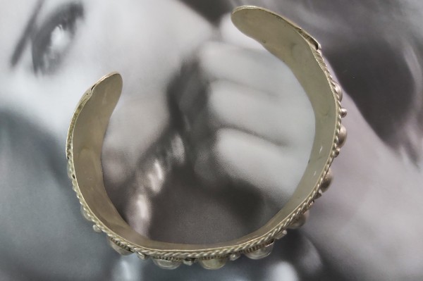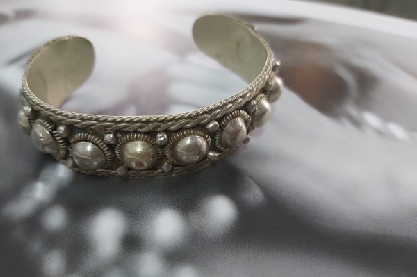 Bratara model etnic,metal inoxidabil (alpaca),marime 7 cm ,reglabila,conditie excelenta!