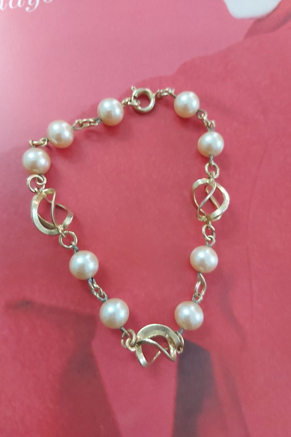 Bratara moderna ,metal placat cu aur si perle false ,marime 19 cm ,conditie excelenta!