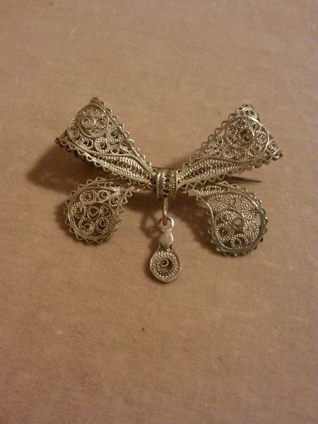 Brosain forma de funda din argin lucratura manuala filigran,marimea 4,2,5 cm,greutate 5,83 g,argint 925,inchizatoare in forma de C