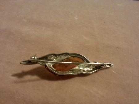Brosa moderna cu chihlimbar in montura de argint,marimea 6/2 cm,greutate 7,10 g,argint 925,inchizatoare tip spring ring
