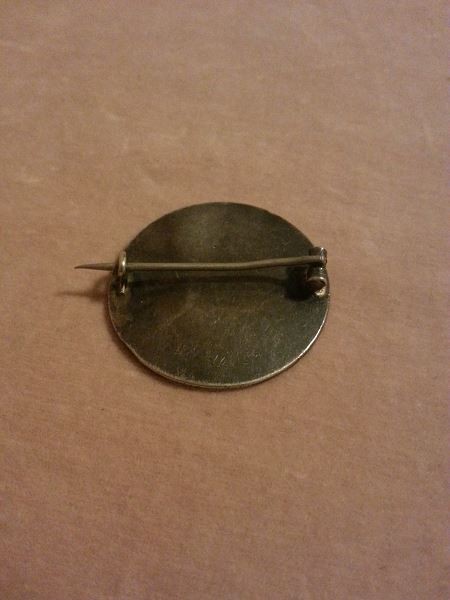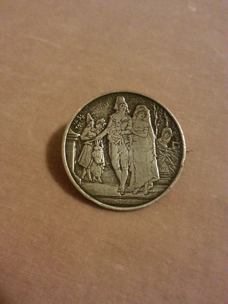 Brosa victoriana cu scena de nunta,lucrata manual,diametru 3 cm,greutate 9,4 g,argint 800,inchizatoare in forma de C