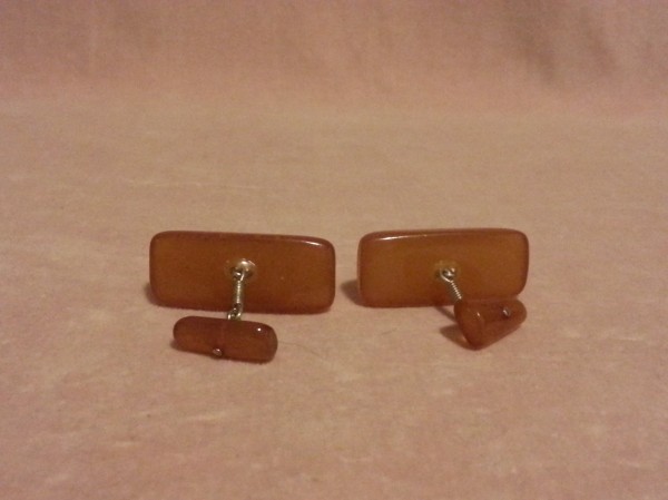 Butoni din chihlimbar si metal placat cu aur,conditie excelenta