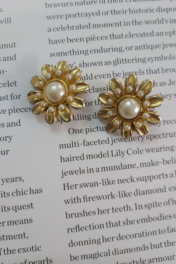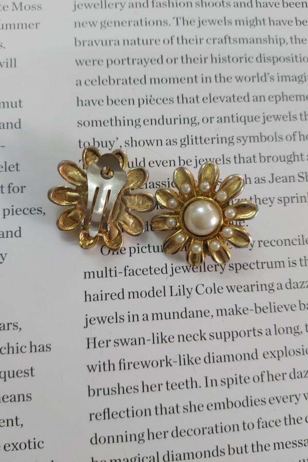 Cercei clips anii 1980 !metal placat cu aur si perlefalse,marime 3 cm ,conditie excelenta!