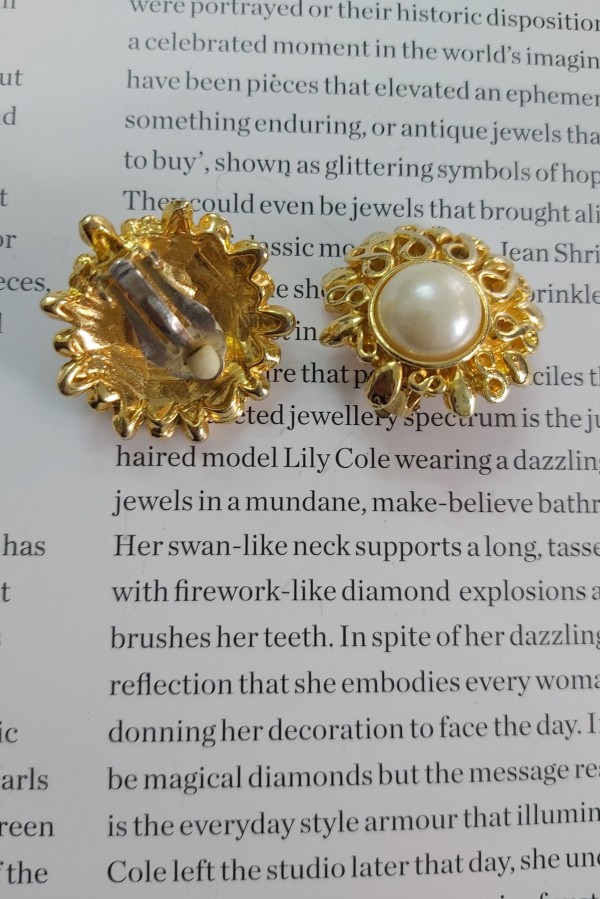Cercei clips anii 1980! metal placat cu aur si perla falsa,marime 3 cm,conditie excelenta!