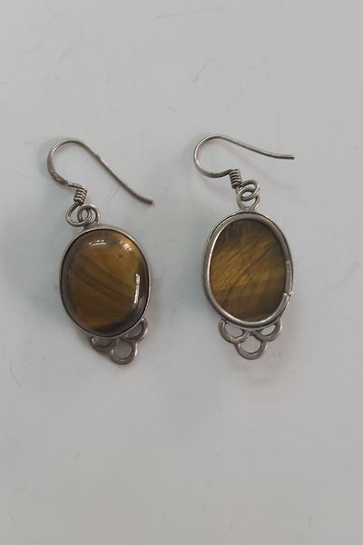Cercei din argint cu ochi de tigru! lucrati manual ,argint 925 si ochi de tigru,marime 4 /1,5 cm ,greutate 7,8 cm ,conditie excelenta!