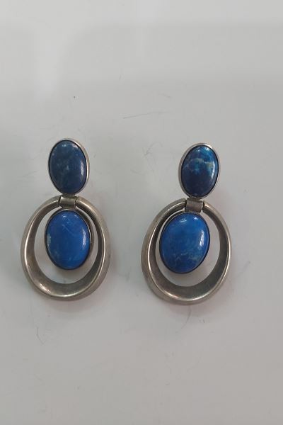 Cercei din argint cu lapis lazuli! argint 925 si sodalit ,greutate 23,50 g ,marime 4,5/2,5 cm ,conditie excelenta !