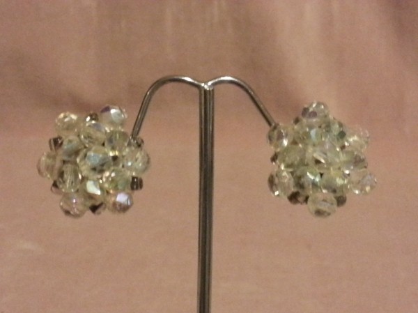 Cercei retro cu clips din metal si cristale Cehoslovacia