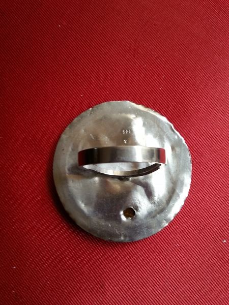 Inel XL cu paua shell,lucrat manual,diametru 3,8 cm,banda inel 0,7 cm,gramaj 9,36,argint 925,are un mic defect de bijutier conf,poza