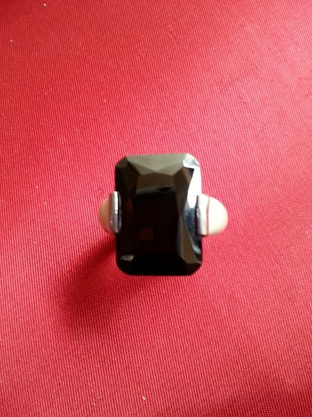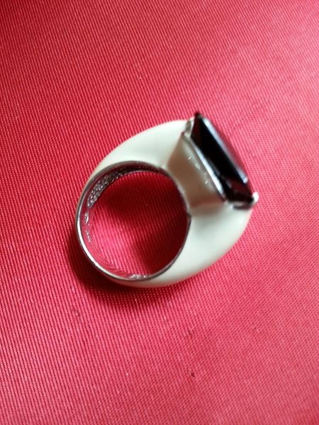 Inel cu email si piatra naturala de Cuart fumuriu,marime piatra 2/1,5 cm,latime 2,5 cm,latime banda inel 0,7 cm,gramaj 17,40g,arginr 925 ,marime standard RO 18/58