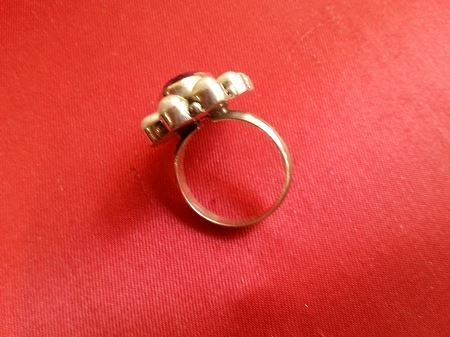 Inel cu piatra naturala Ametist si perle de cultura,dimensiune inel,latime3cm/2 cm,latime banda inel 0,3,marime piatra ametist 1,5/1cm, 9 perle de cultura ,1perla falsa,greutete 10,05g,argint 925 ,marime standard Ro:18/58