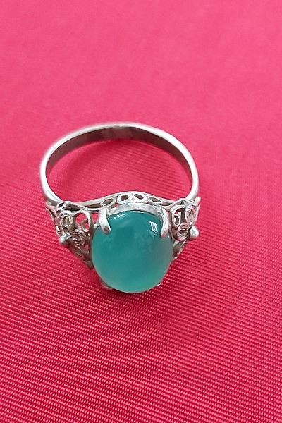 Inel din argint filigranat si Aventurin!marime 2,5/2cm ,latime verigheta 0,2cm ,marime RO 15/55.argint 925,gramaj 2,9g,conditie excelenta!