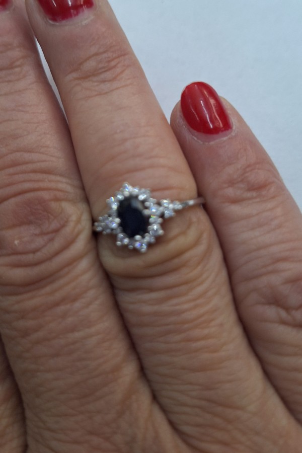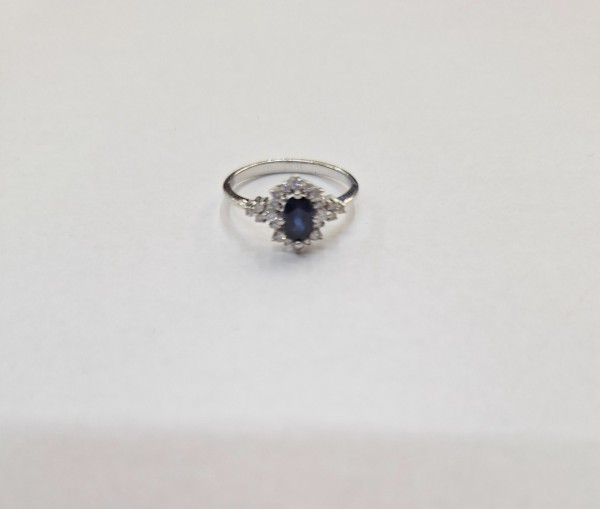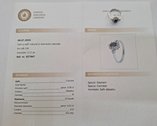 Inel cu Safir naturale și Diamante naturale, Aur alb 14k, marime 12/52! 2150 ron! Detalile despre Inel le gasiti in Certificatul Gemologic!