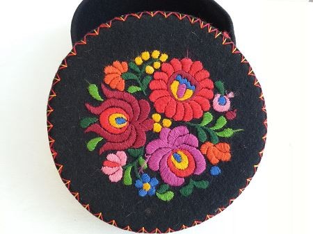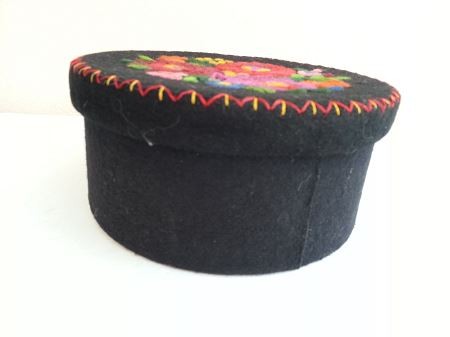 caseta pentri bijuterii din postav brodat, este lucrata manual,18x8 cm ,conditie excelenta