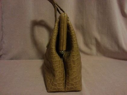geanta ani 60 din piele imitatie croco,30x23x10 cm,1compartiment,1buzunar,captusita cu material textil(saten),se inchide cu clapeta din metal,2 barete de 40 cm,conditie excelenta
