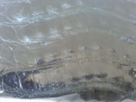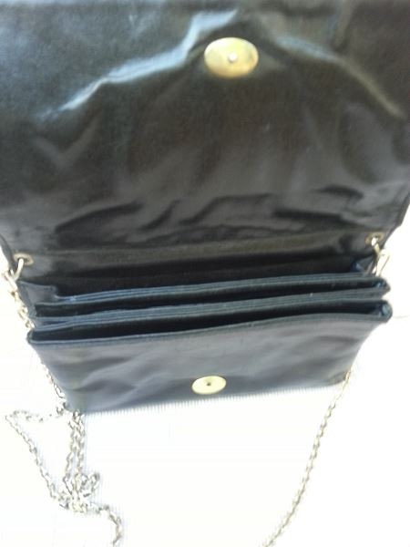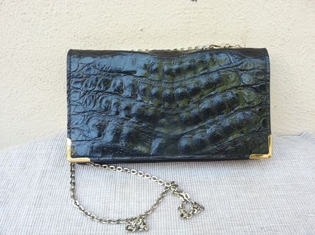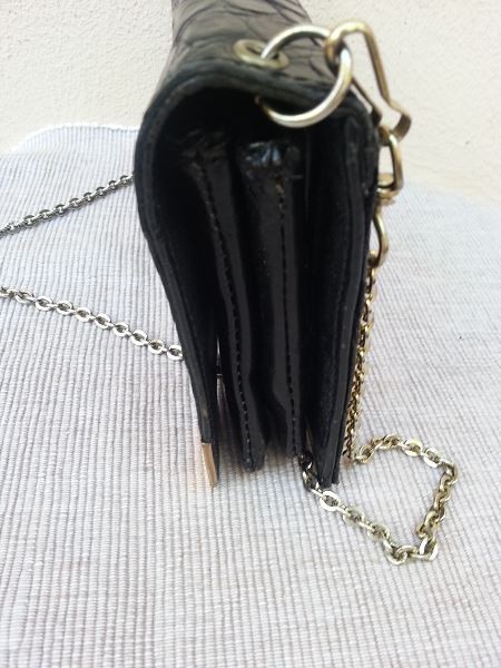 geanta gen plic din piele de crocodil,marimea 11x21x12 cm,3 compartimente,1 buzunar,captusita cu piele, se inchide cu bumb de metal,bareta din lantisor detasabil de 97 cm,conditie f buna
