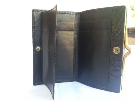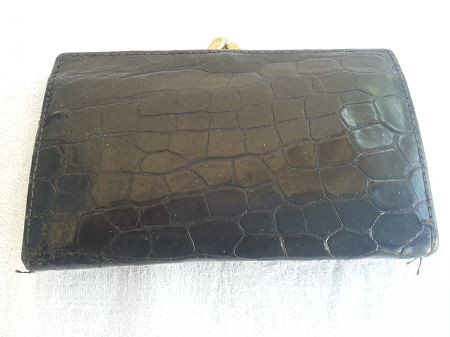portmoneu pentru bani din piele crocodil,7x11 cm,captusit cu piele mai multe compartimente,conditie buna