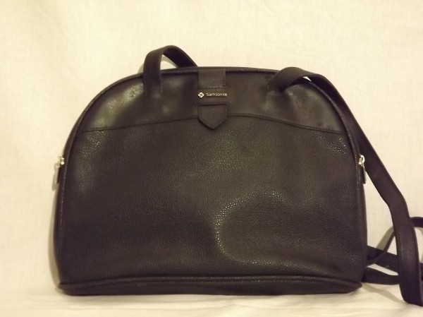 geanta Samsonite retro din piele ani 80,36x26x11 cm,1 compartiment,2 buzunare,captuseala textila,2 barete de 105 cm,se inchide cu fermoar,conditie buna