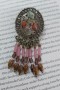 Brosa anii 1980,lucrata manual,metal inoxidabil,cristale ,lemn si agate,inchizatoare in forma de C,marime 10/4 cm ,conditie excelenta!...