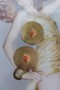 Cercei clips anii 1970,metal placat cu aur si perla falsa,marime 2,5 cm,comnditie excelenta!...