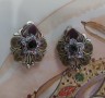 Cercei clips anii 1940 ,filigran de alama si granat de Bohemia,marimea 1,5/3 cm ,conditie excelenta!...