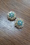 Cercei clips anii 1960,metal placat cu aur,perle si turcoaze false,marime 2,5 cm ,conditie excelenta!...
