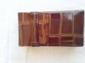 portmoneu din piele de sarpe ,lucrat manual,10x11cm,6compartimente pentru bancnote,compartimente pentru card si pentru marunt,captusit cu piele,conditie excelenta(nou)...