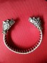 Bratara masiva cu capete de leopard si rubine, lucrata manual,marime totala 20 cm,latime 1 cm ,marime cap leopard 4/2 cm, are 4 rubine naturale pe post de ochisori,gramaj 60,08 g,argint 925 si semnatura de bijutier,...
